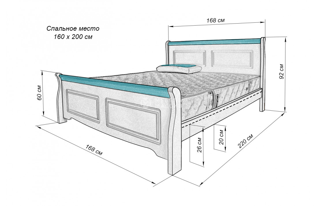 140x200 - глубина уменьшается на 100 мм = 685 мм