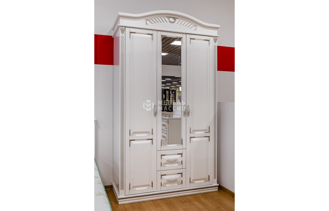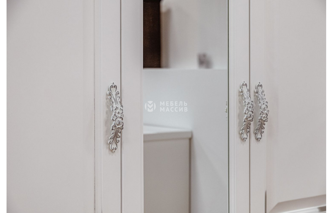 Шкаф Эйблер Люкс (белая эмаль с серебряной патиной) из натурального древесного массива имеет три основных отделения для хранения, вертикальное зеркало и пару компактных ящиков для небольших аксессуаров. отличительной чертой изделия, которое можно купить по лучшей цене в нашем интернет-магазине, является изысканный гнутый багет.| Размер | Цена | |