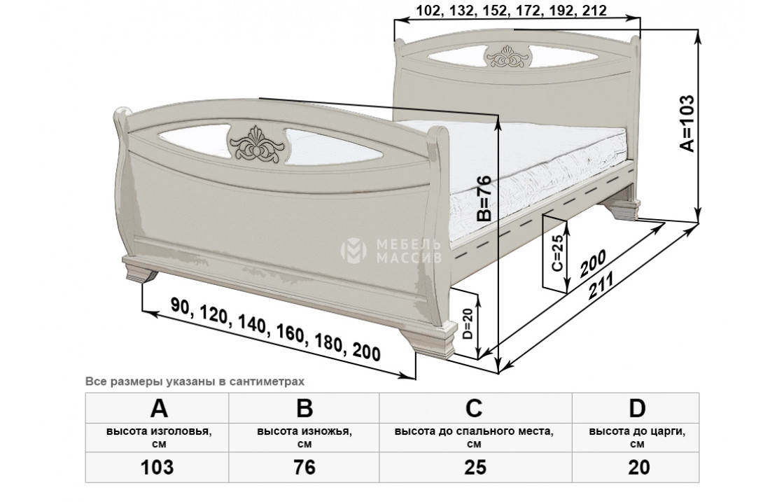 Кровать Эльза имеет две идентичные спинки, отличающиеся аккуратной изогнутостью, декоративными углублениями и цветочными узорами. Изделие, которое можно купить по специальной цене в нашем интернет-магазине, оснащено устойчивыми ножками, защищающими напольное покрытие от повреждений. Осуществляется доставка на дом по Мурманску и Мурманской области.| Размер | Цена | |