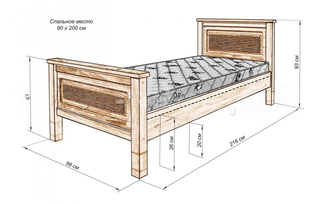 Кровать Фермер из экологически чистой натуральной древесины. изделие представлено в четырёх вариантах исполнения из древесины на выбор: сосна, берёза, бук или дуб. широкий выбор вариантов покраски позволяет органично вписаться в любой интерьер. отличается износостойкостью, прочностью, лаконичным дизайном. приобретайте изделие по выгодной цене с доставкой на дом в интернет-магазине «мебель массив». Осуществляется доставка на дом по Мурманску и Мурманской области.| Размер | Цена | |