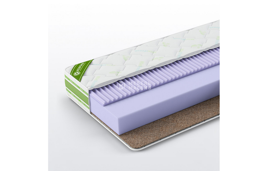 Кокос - переплетенные волокна кокосового ореха, растительного происхождения. Исключительные свойства кокоса в прочности, упругости и гигиеничности. Материал придает жесткости матрасу. Обладает отличной вентилируемостью, устойчив к любой влажности и перепадам температуры, гипоаллергенный и долговечный.