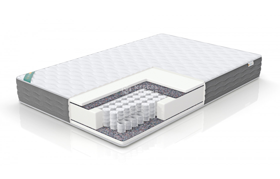 Блок независимых пружин - состоит из множества пружин имеющих форму бочонка, небольшого диаметра 5-6 см. Пружины изготовлены из проволоки. Они находятся в отдельных чехлах из очень прочного материала и скреплены термоспайкой, что позволяет идеально распределять нагрузку. Отдельная пружина реагирует на вес человека, вне зависимости от других, и матрас, повторяя контуры тела, позволяет оставаться позвоночнику ровным.
