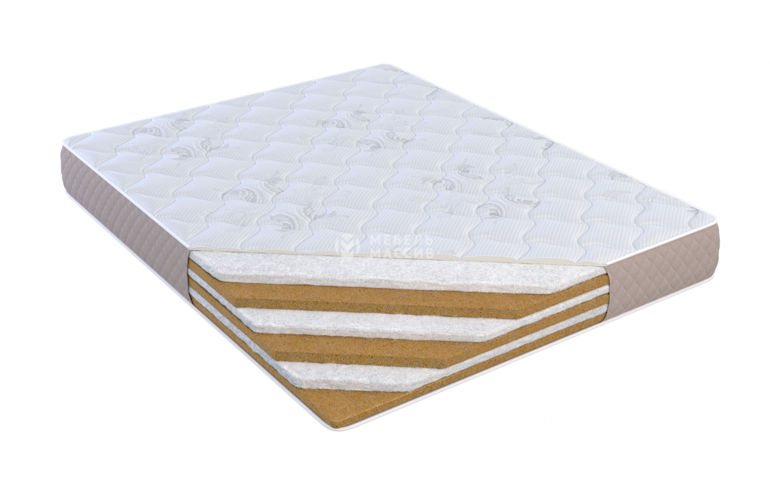 1. Кокос 3 см ? Кокос - переплетенные волокна кокосового ореха, растительного происхождения. Исключительные свойства кокоса в прочности, упругости и гигиеничности. Материал придает жесткости матрасу. Обладает отличной вентилируемостью, устойчив к любой влажности и перепадам температуры, гипоаллергенный и долговечный.