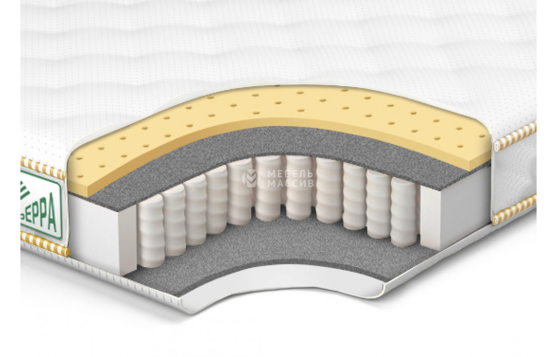 Латекс — натуральный материал. Производится из сока каучукового дерева Гевея. Очень долговечный и упругий материал. Обладает антисептическим действием. Благодаря наличию множества микроячеек латекс обладает уникальными свойствами: гигиеничность, гипоаллергенность, устойчивость к перепадам температуры и влажности, вентилируемость. В производстве наших матрасов используется латекс, обладающий максимальным ортопедическим эффектом.