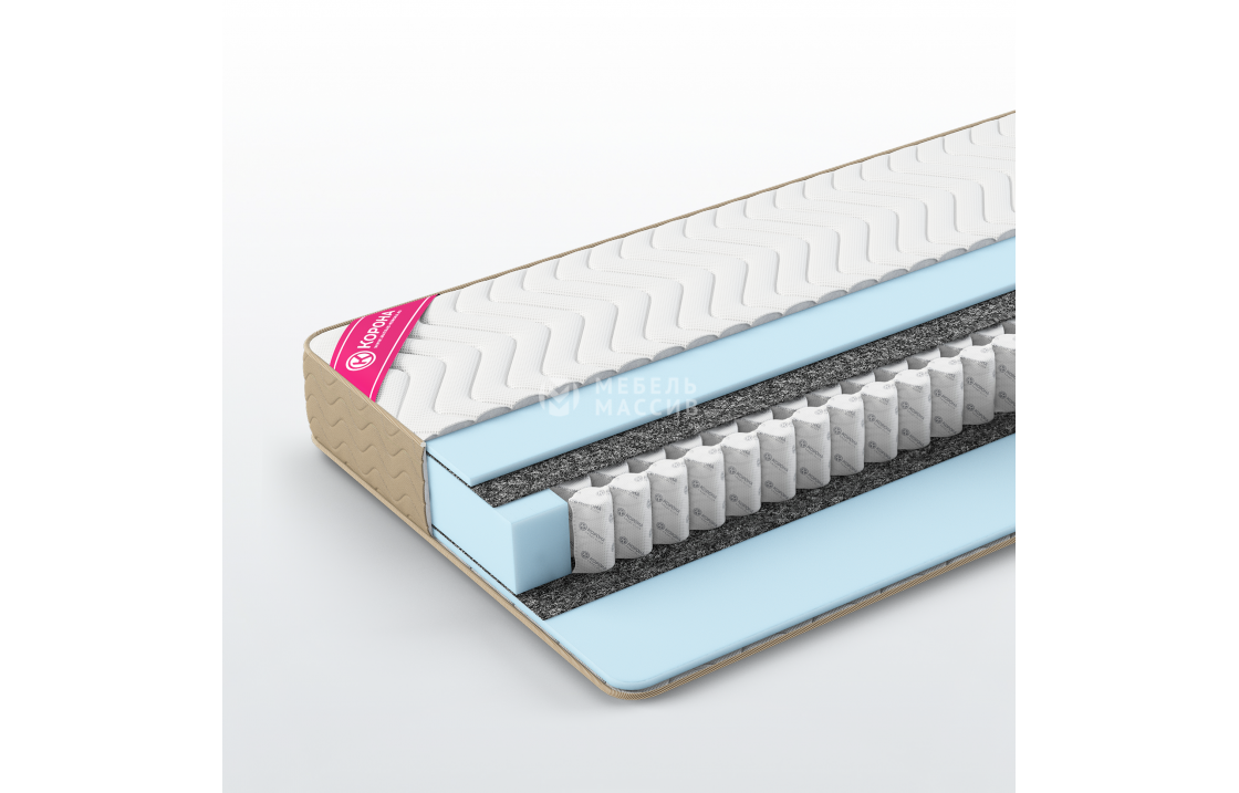 2. Короб из ППУ ? ППУ по периметру - высокоэластичный пенополиуретан (ППУ). Материал расположен по периметру матраса, что усиливает его каркас. Обладает свойствами: прочность, плотность и огнестойкость.