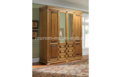Шкаф четырехстворчатый со встроеннным комодом (розовая патина) из серии "Кардинал"