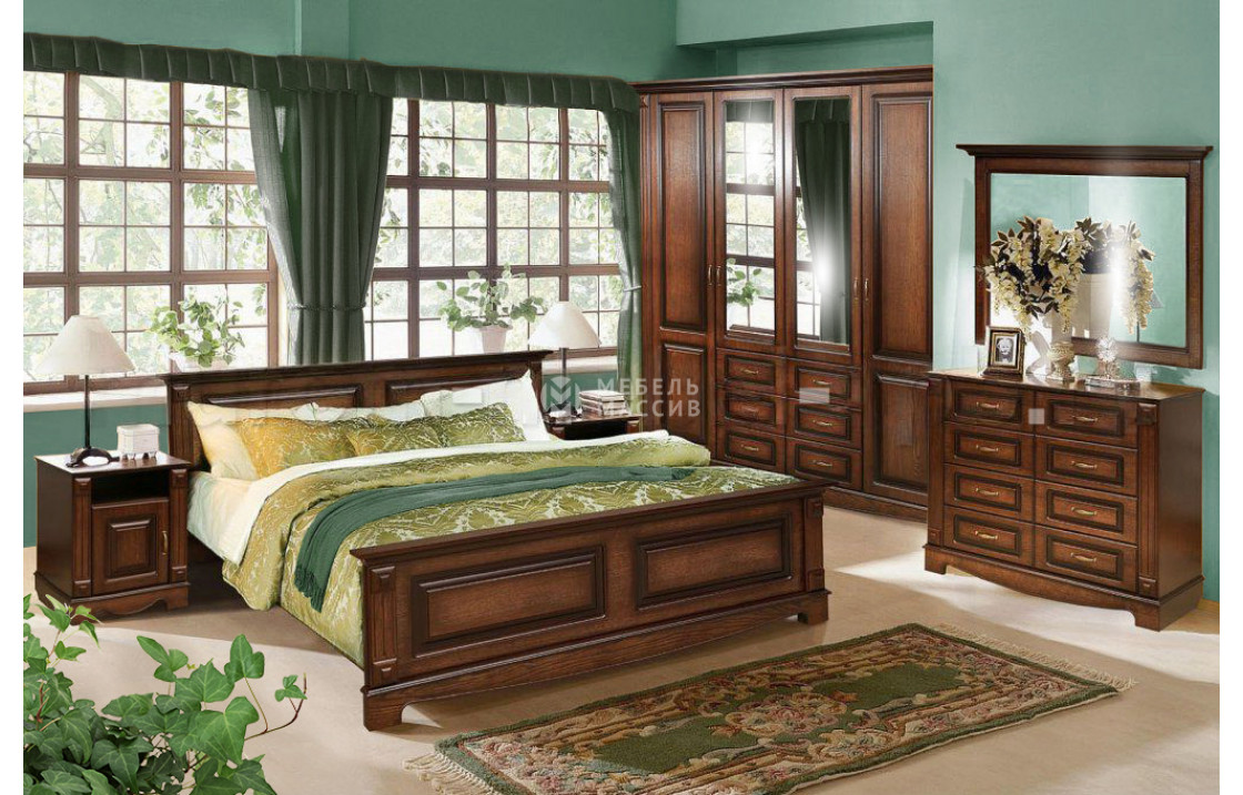 Спальный гарнитур Версаль 1 – набор мебели для обустройства спальни. Он выдержан в единой стилистике, что будет положительно влиять на интерьер комнаты. В состав гарнитура входит двуспальная кровать, большой шкаф, прикроватные тумбочки, широкое зеркало и комод. Все изделия произведены из натуральной древесины – экологичного материала, отличающегося надежностью, устойчивостью к различным вредоносным внешним факторам и долговечностью. Цвет дерева можно выбрать индивидуально в зависимости от предпочтений. Состав спального гарнитура: Кровать Версаль из массива сосны: размер 90 x 200 см, 1 шт. - 29 100 руб. Тумба Версаль из массива сосны: размер 550x500x350, 2 шт. - 33 960 руб. Комод Версаль 8 ящиков из массива сосны: размер 940x1100x450, 1 шт. - 53 510 руб. Зеркало Версаль из массива сосны: размер 900x1100, 1 шт. - 8 910 руб. Шкаф 4-х створчатый Версаль из массива сосны: размер 2200x1600x550, 1 шт. - 151 170 руб. Доставка по Мурманску и Мурманской области.| Материал | сосна |